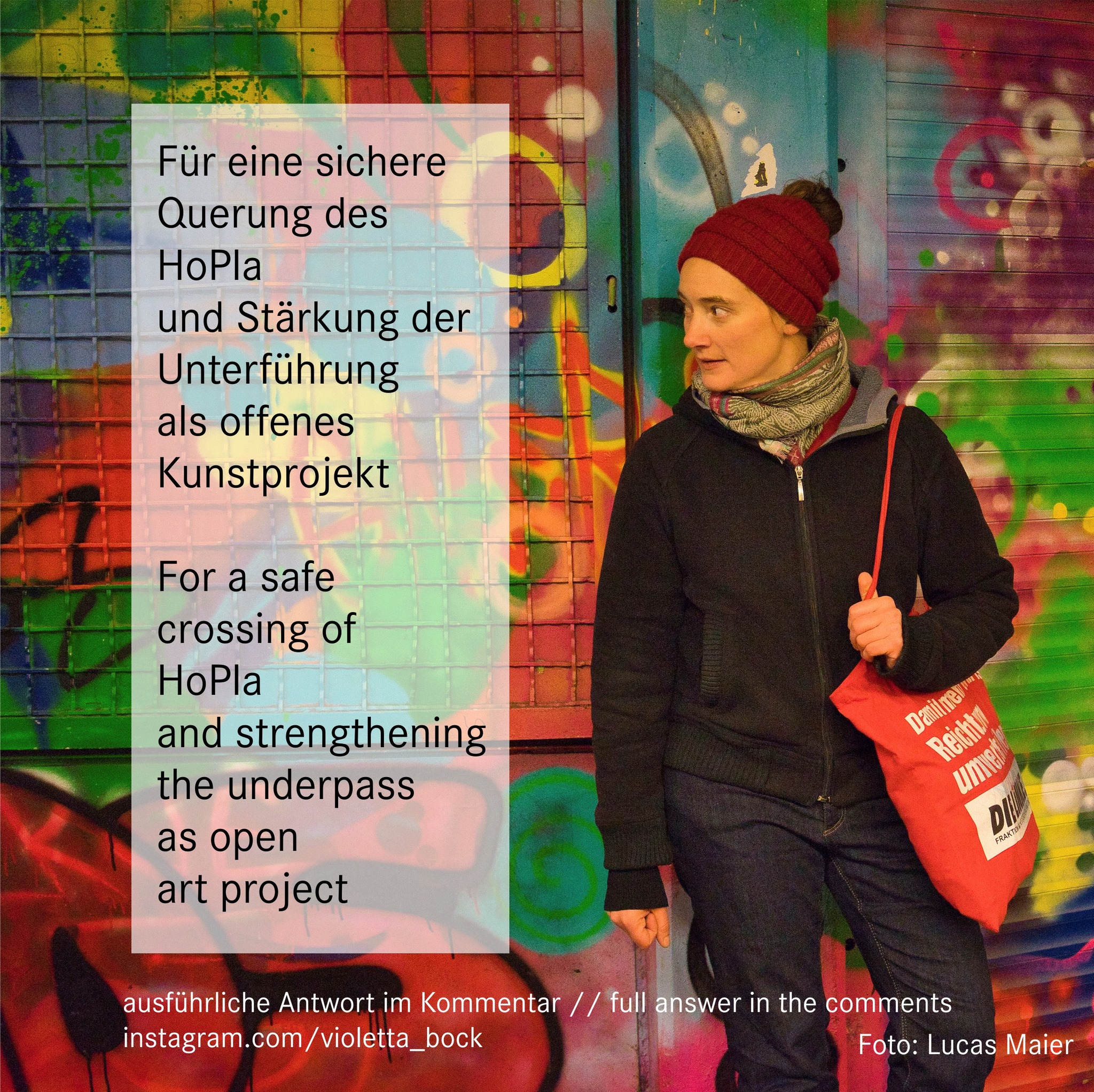 The HoPla shows how ugly and threatening the „car-friendly city“ is. As a first step, a pedestrian-friendly and barrier-free above-ground crossing of the intersection must be set up as it has been demanded by the local council for years. In the exhibition with drafts for the redesign, we saw what a human-friendly HoPla can look like as an entrance to the city center. The traffic test for a car-free Untere Königsstraße has shown how much space we gain if we don’t think of the city from the perspective of the car. The underpass could be strengthened as an open art project.