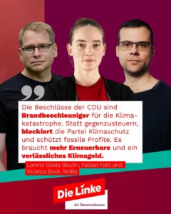 Während die CDU an der Seite der Gaslobby die Zeit zurückdrehen will, kämpfen wir für Klimagerechtigkeit, die sozial und ökologische ist.