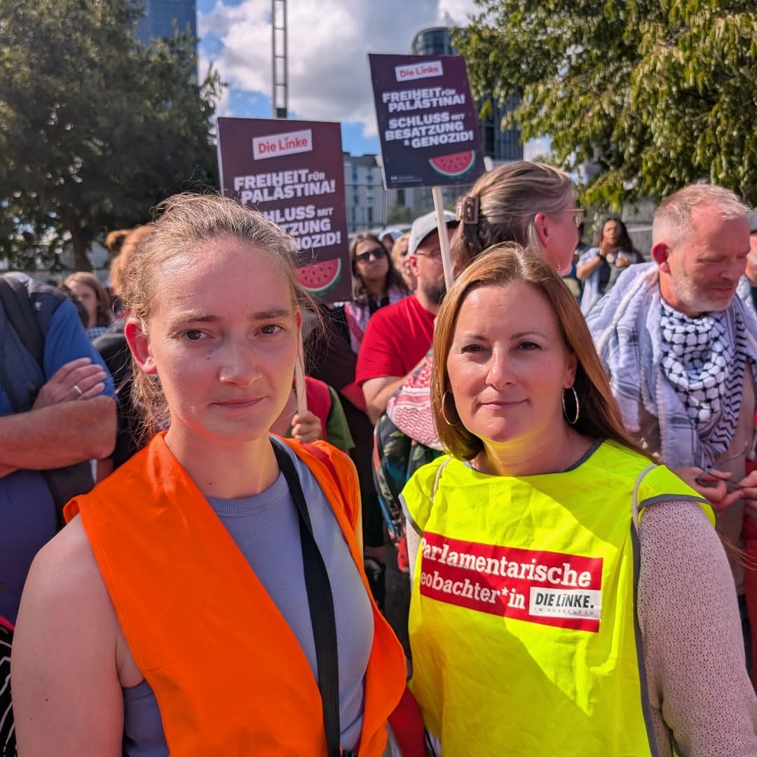 Heute parlamentarische Beobachtung bei der #united4gaza Demo in Frankfurt. Tausende Teilnehmer:innen fordern: Schluss mit Waffenlieferungen und Kriegsverbrecher, für ein Ende der Besatzung, Freiheit für Palästina